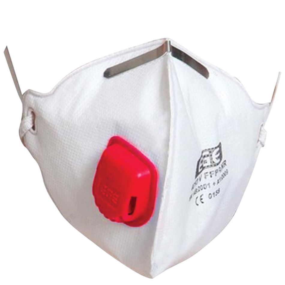 Вертикално сгъваем респиратор с клапа за дихателна защита срещу аерозолни частици, фин прах, дим и мъгла.