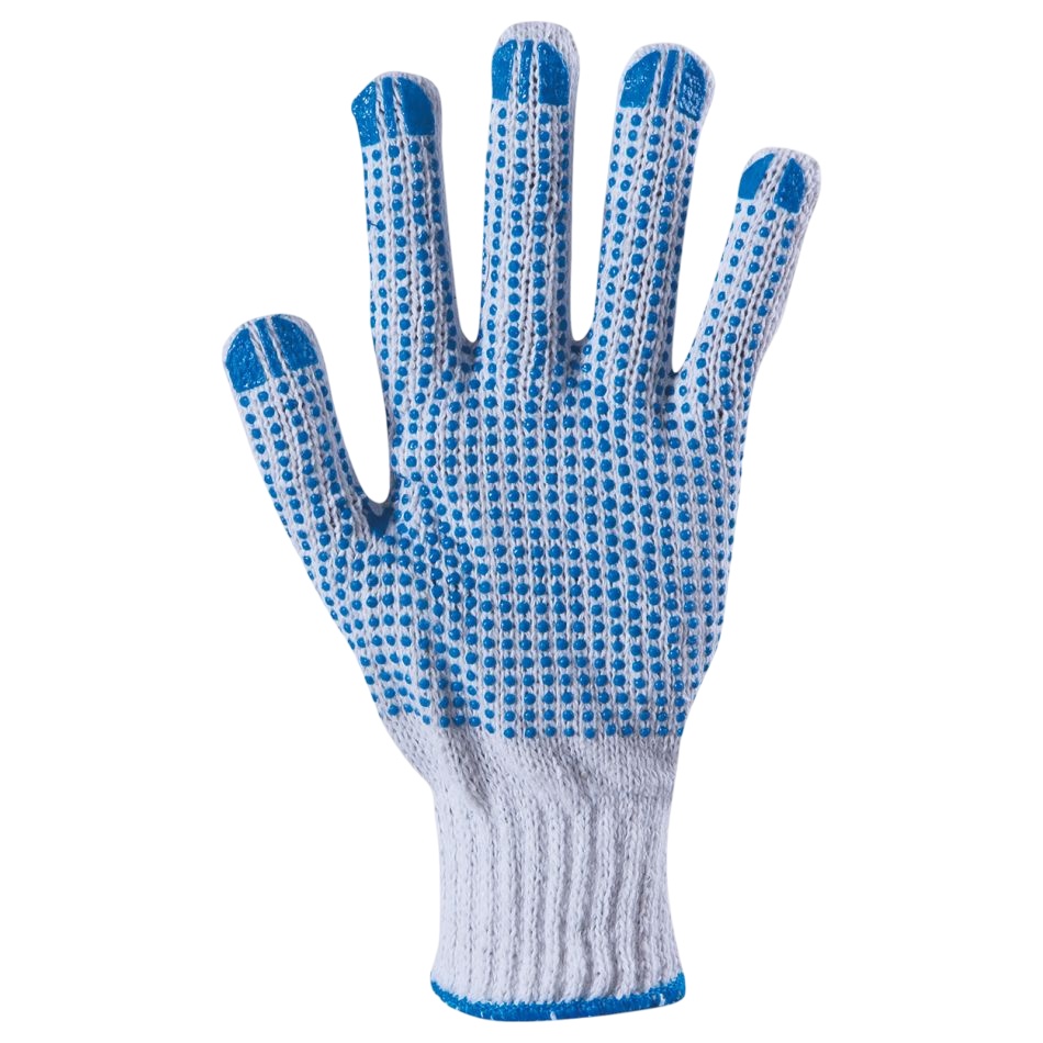 Ръкавици изработени от безшевно плетено трико с полимерни капки на дланта и пръстите, еластичен плетен маншет.