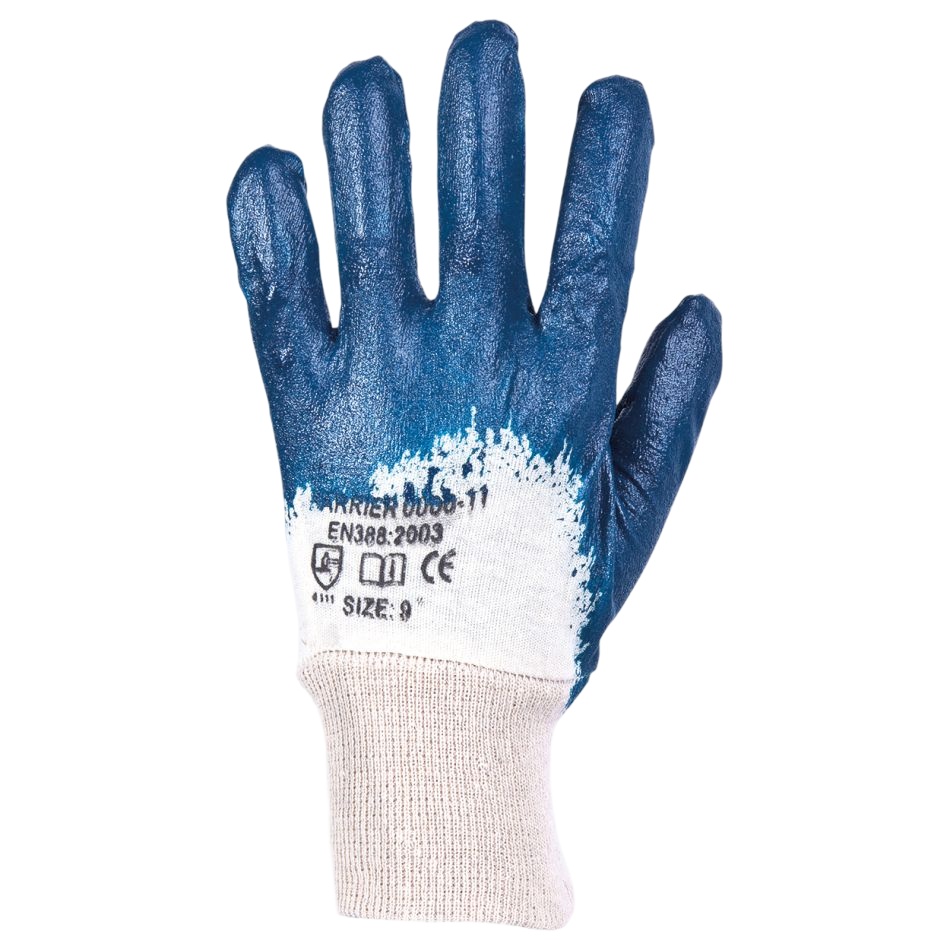 Ръкавици изработени от безшевно, плетено трико, изцяло топени в нитрил с еластичен маншет.
