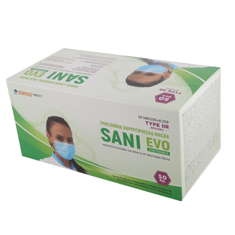 50 бр. (1-Кутия) – Медицинска маска SANI EVO – FMN99 – TYPE IIR