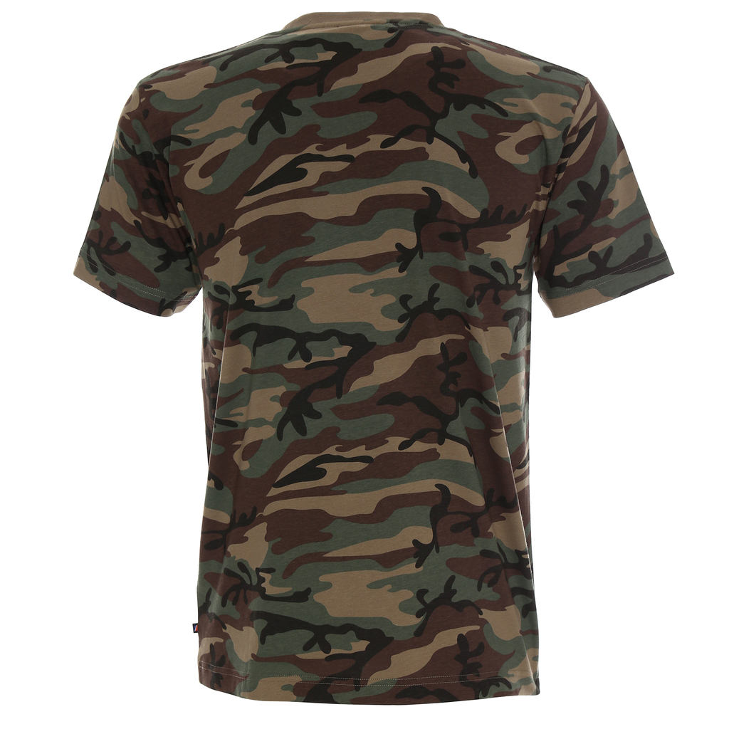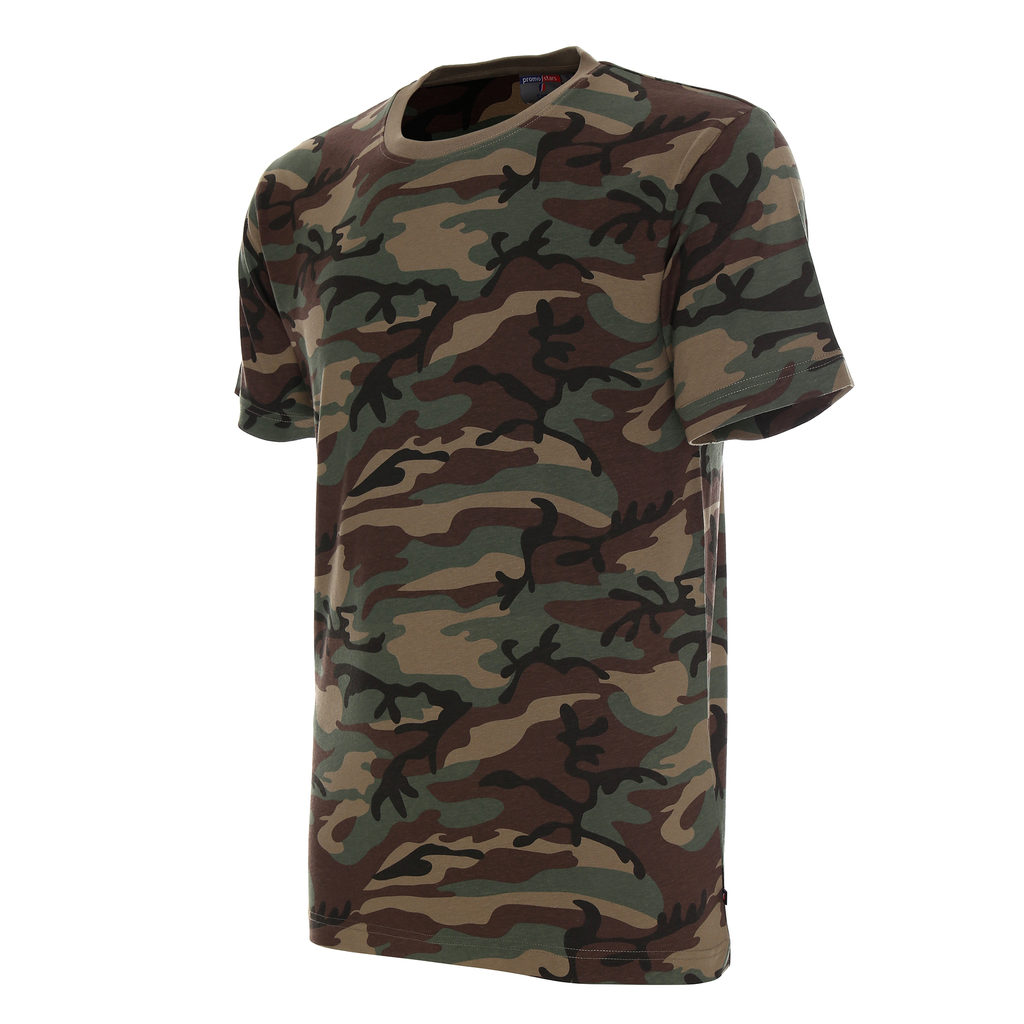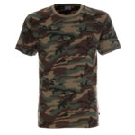 Тениската е с меко и гладко трико с отпечатана камуфлажна шарка.