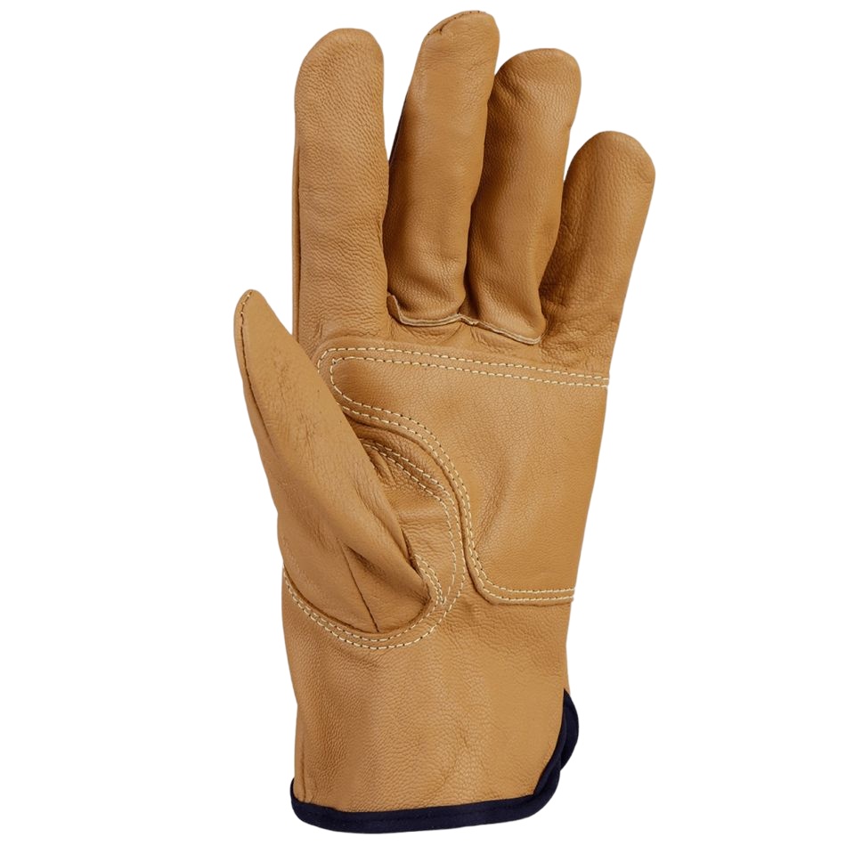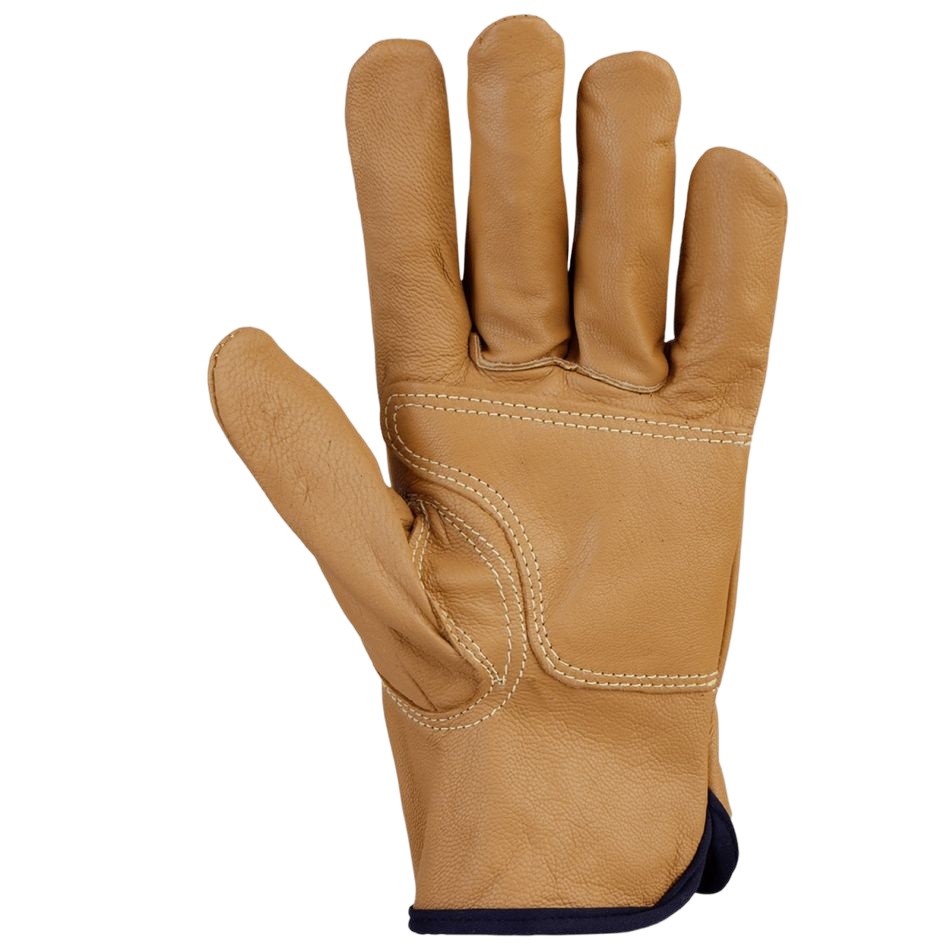 Ръкавици, изработени от ярешка кожа, с еластичен маншет, с жълта полиестерна лента.