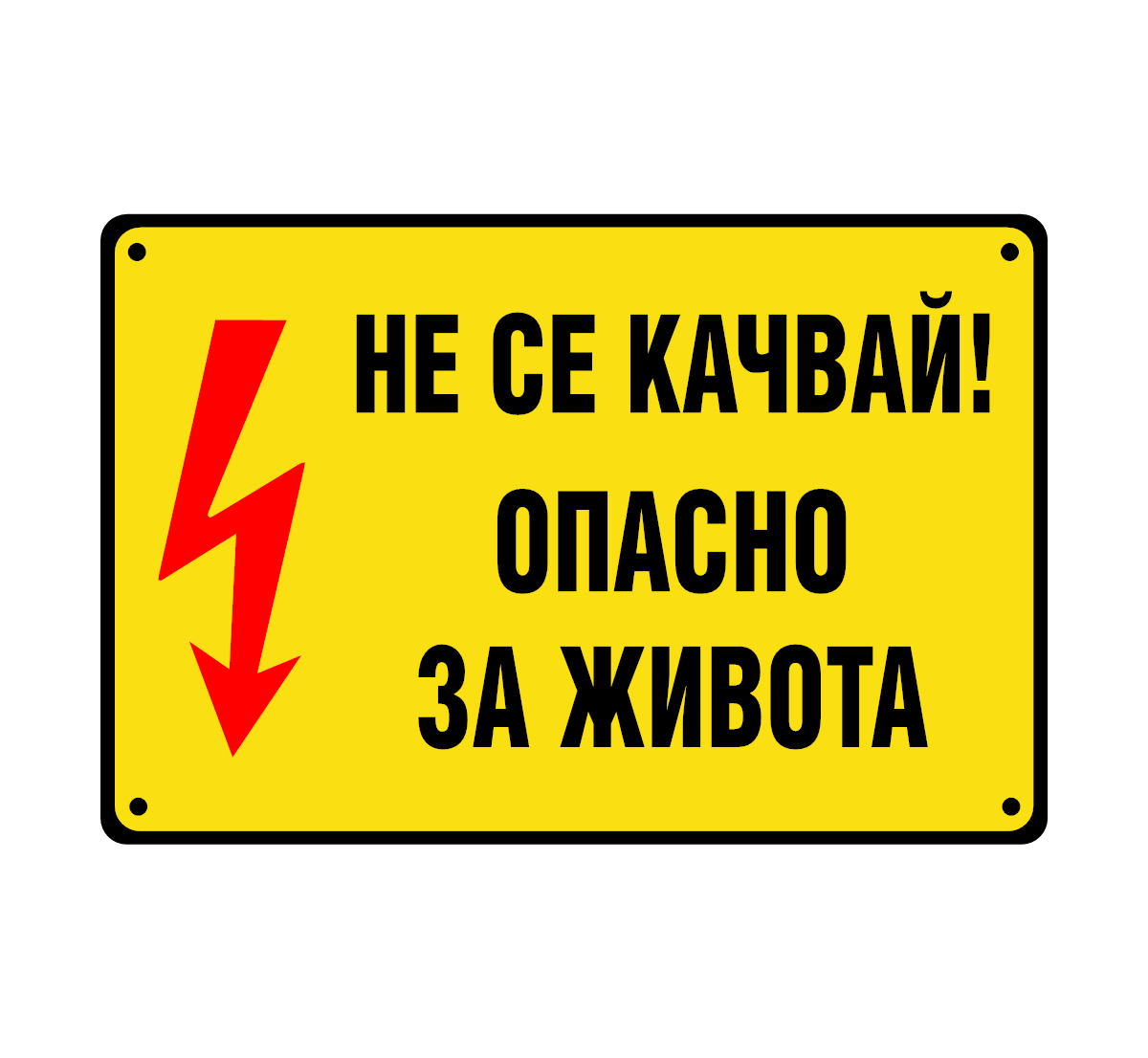 Метална табела - Не се качвай! Високо напрежение опасно за живота 16,36 € / 32,00 лв. (32.00 лв.)