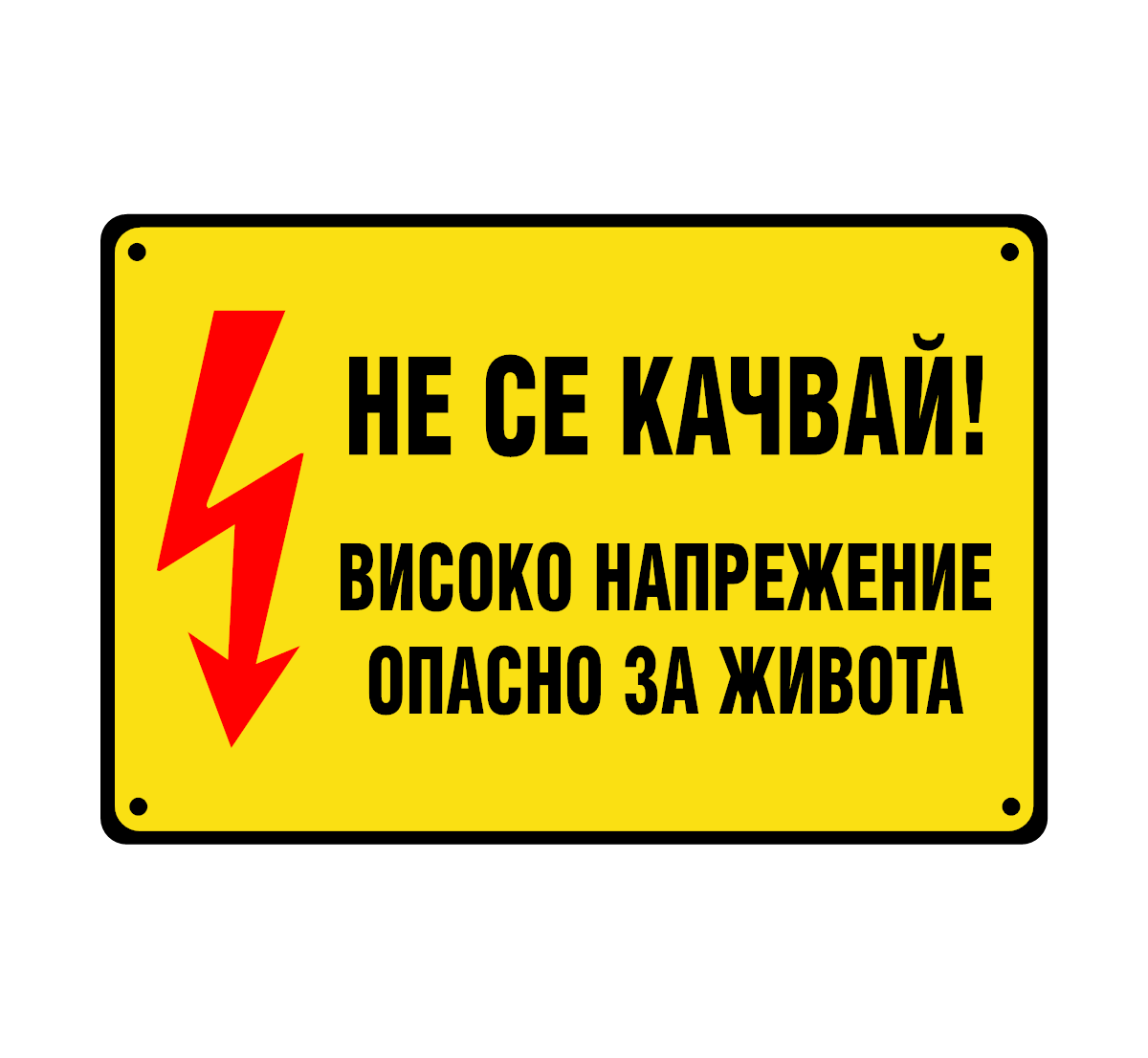 Метална табела – Не се качвай! Високо напрежение опасно за живота