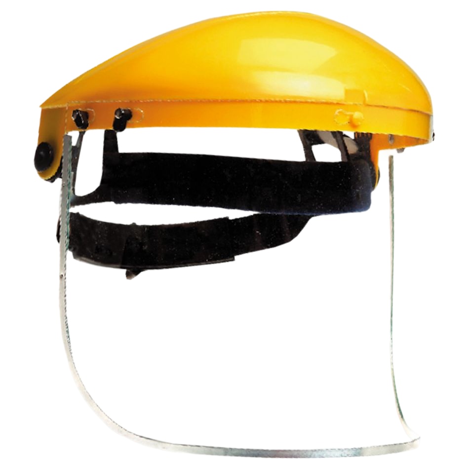Предпазен поликарбонатен щит с козирка от PVC за многократна употреба. Предпазва цялото лице от нараняване от механични частици, капки или малки пръски течност, устойчив на химични вещества.