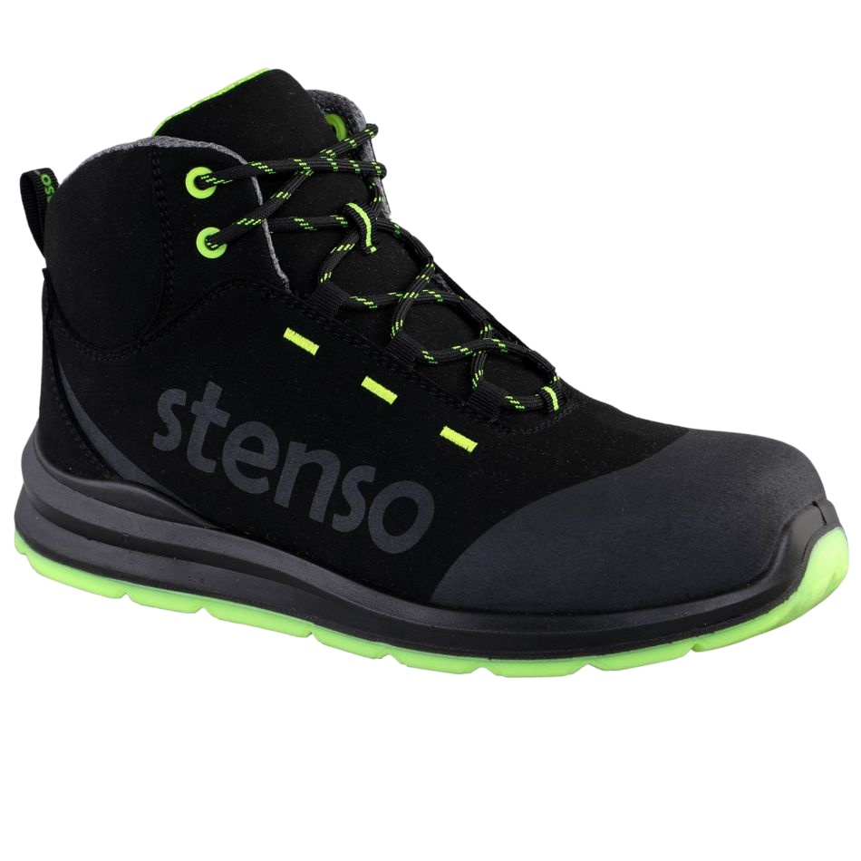 Начало Обувки Боти Боти категория S3 с Бомбе, Пластина + Водозащита Работни обувки Stenso JETT ANKLE MF S3- Черен/Зелен