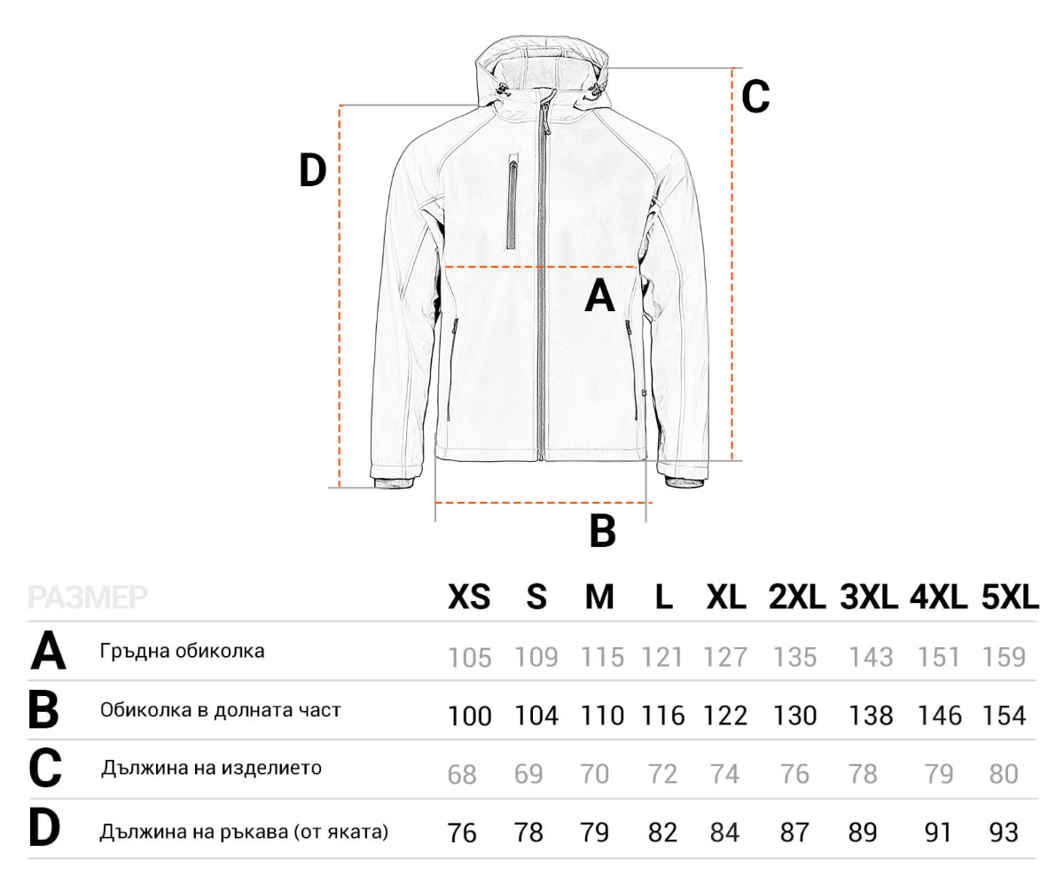 Материал: 150D полиестер механично стречиран + TPU мембрана + полар, 300 гр./м², 8000 мм воден стълб, 200 mvp въздухопропускливост.