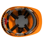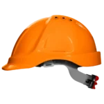 Вентилирана защитна каска с 4-точков подбрадник, корпусът е изработен от ABS материал, оборудвана с 6 отвора за вентилация.